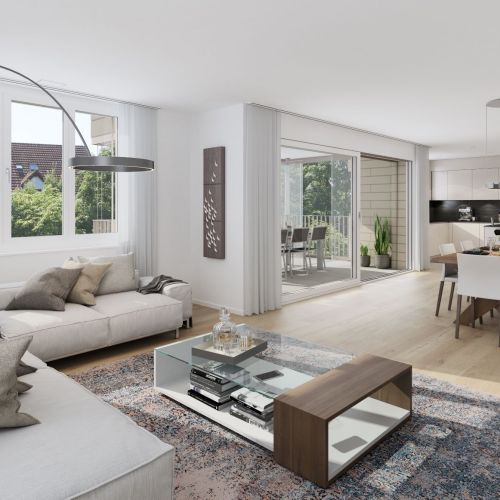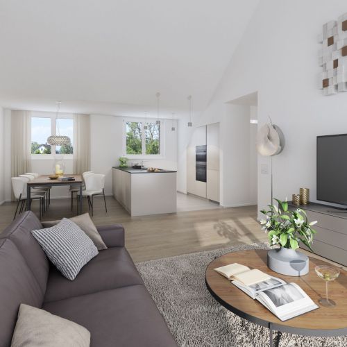 Entdecken Sie attraktive Wohnungen, die höchsten Wohnkomfort mit stilvollem Design vereinen. Die Innenräume verfügen über einen durchdachten Grundriss, offenen Wohnbereich und hochwertige Ausstattung.