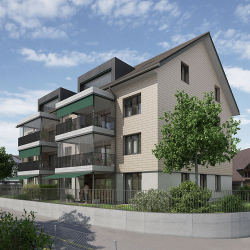 Im Herzen der charmanten Gemeinde Bottighofen entstehen zwei Mehrfamilienhäuser mit insgesamt 19 grosszügigen und sehr modernen 2.5 bis 4.5 Zimmerwohnungen, welche im Juli 2026 bezugsbereit sind.